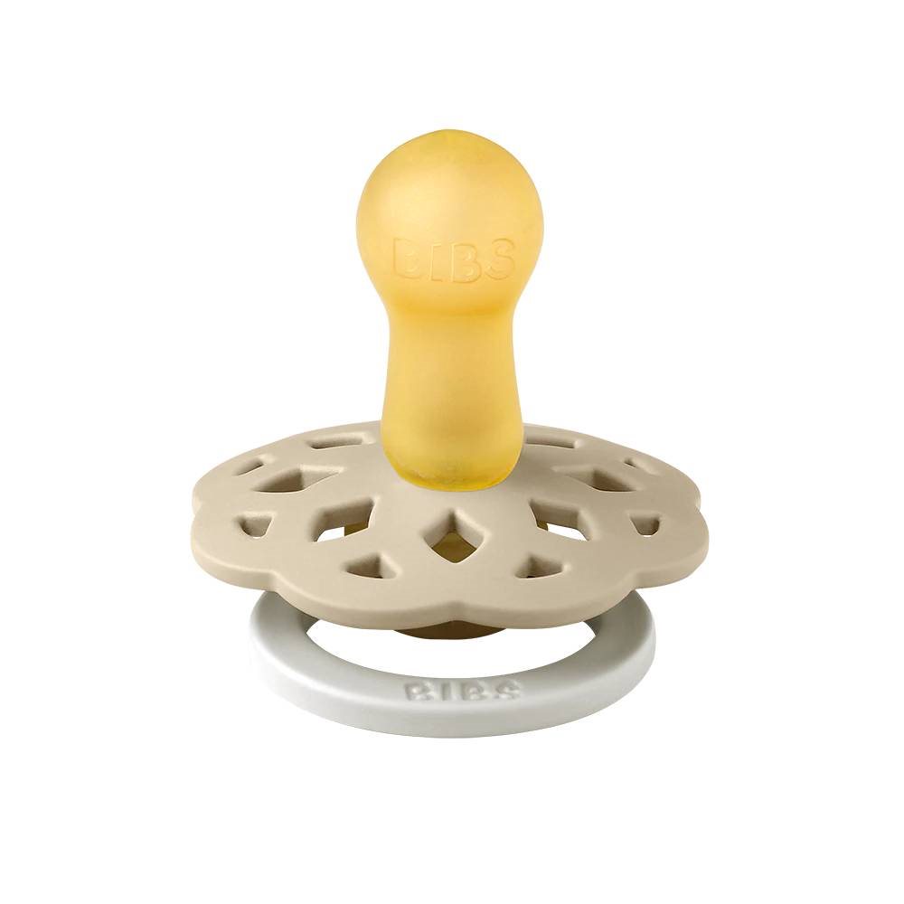 Bibs sutterne har et rundt suttehoved, der er fremstillet i 100% naturgummi med en ventil i suttedelen, der gør det nemt for barnet at presse luften ud af sutten. På den måde former sutten sig som moderens bryst. Sutten er derfor også et godt valg for dem, som er bekymret for at ødelægge amningen eller barnets sutteteknik.