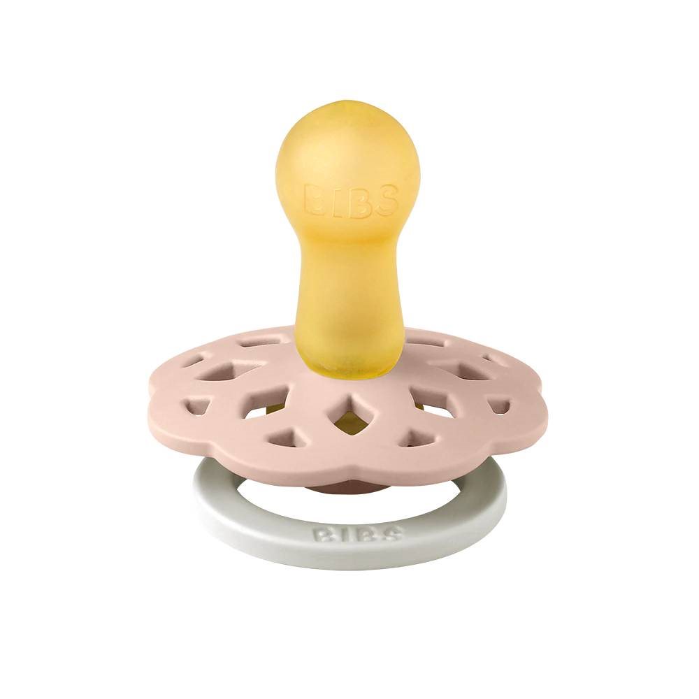 Bibs sutterne har et naturligt, rundt suttehoved af naturgummi. Sutternes skjold er i letvægts-PP med praktiske lufthuller, så gener fra det fugtige miljø og vakuum mod barnets hud undgås.