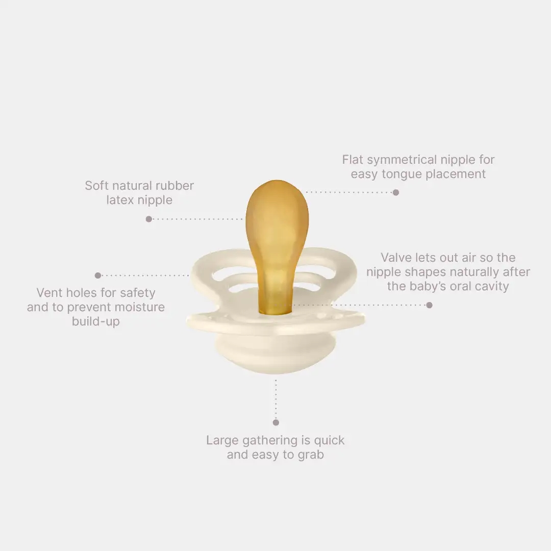 Med sin symmetriske, flade dråbeformede nipple passer Supreme sutten perfekt til babyer, som foretrækker en fladere nipple på sutten. Suttens nipple er formet symmetrisk for at reducere presset på tænder og kæbe for at sikre en sund udvikling af kæben.