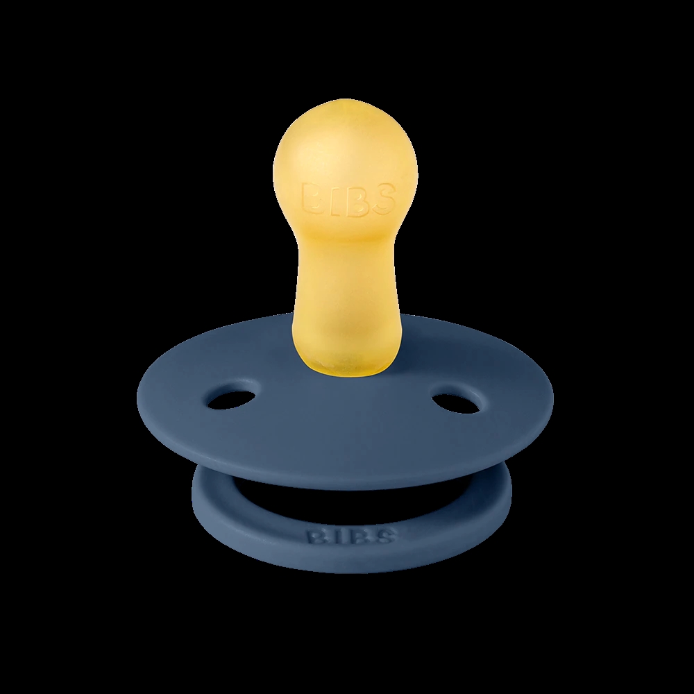 Bibs sutterne har et rundt suttehoved i naturgummi og er solgt i en i 2-pak æske.