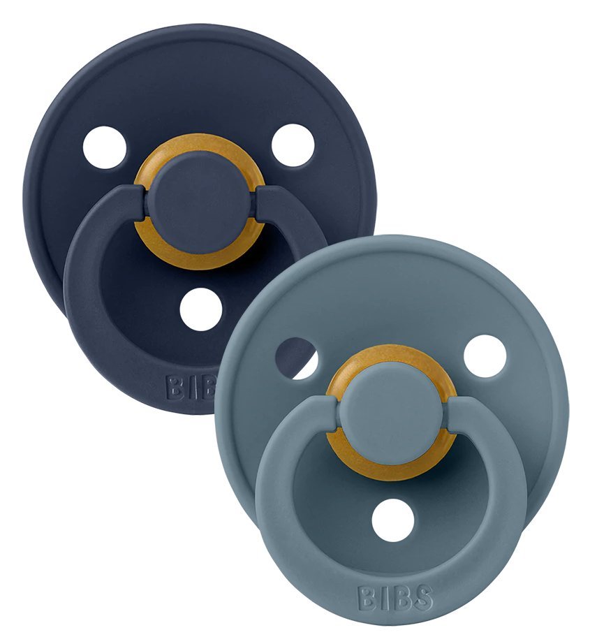 De flotte runde Bibs sutter i de flotte blå nuancer Deep Space og Petrol.
