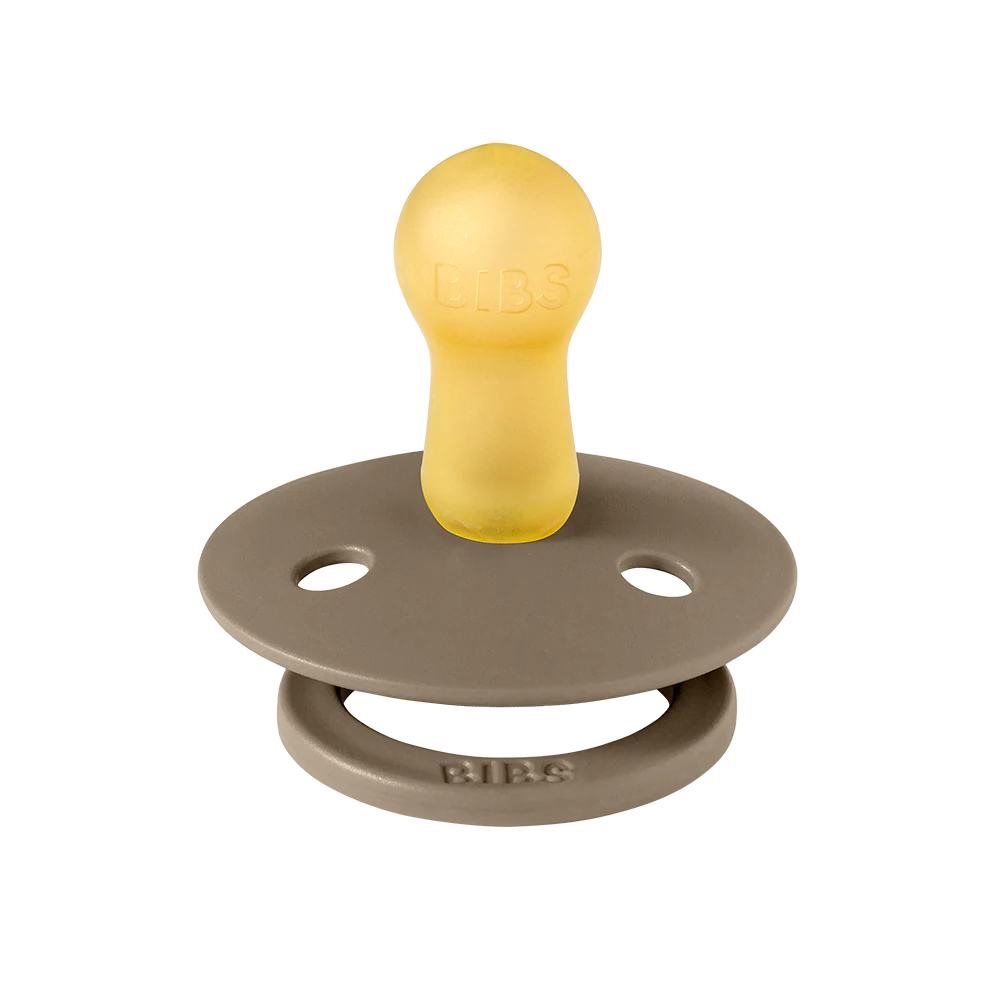 Bibs sutterne har et rundt suttehoved i naturgummi og er solgt i en i 2-pak æske.