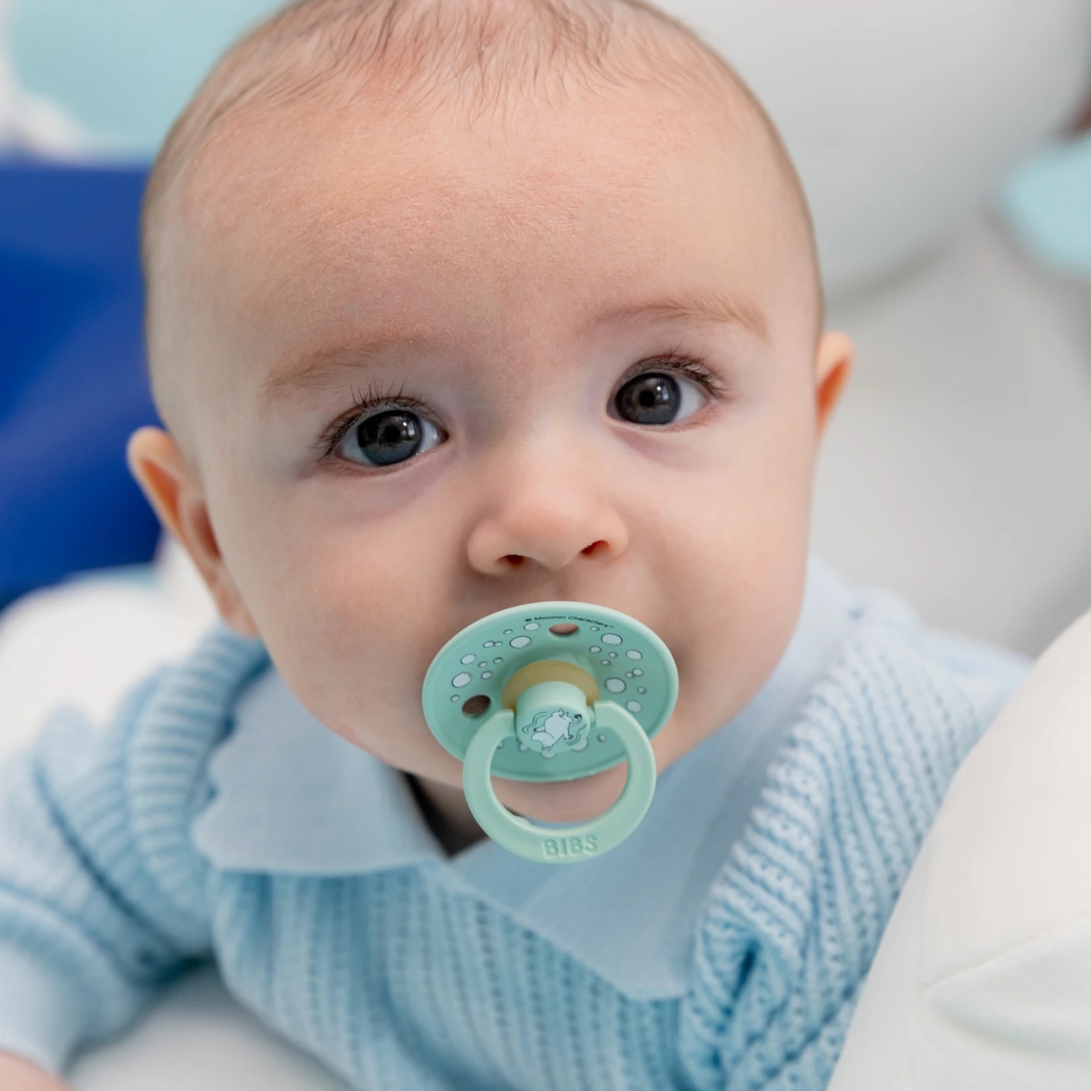 Disse Bibs sutter er lavet af naturgummi (latex), som er et blødt og fleksibelt materiale. Suttehovedet er på grund af dets runde form, som minder om mors bryst, samt fleksibiliteten i naturgummiet udviklet til at understøtte barnets sutteteknik, hvilket gør dem særdeles velegnede til babyer, der ammes.