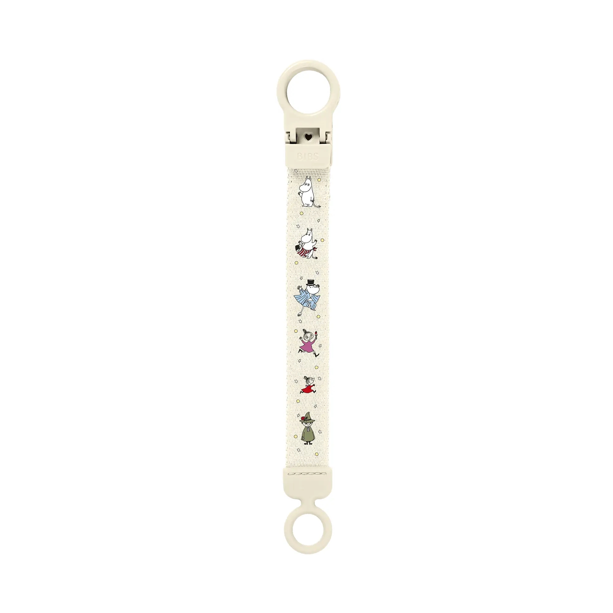 En både sød og praktisk Bibs suttesnor i cremehvid med print af de søde Moomins.