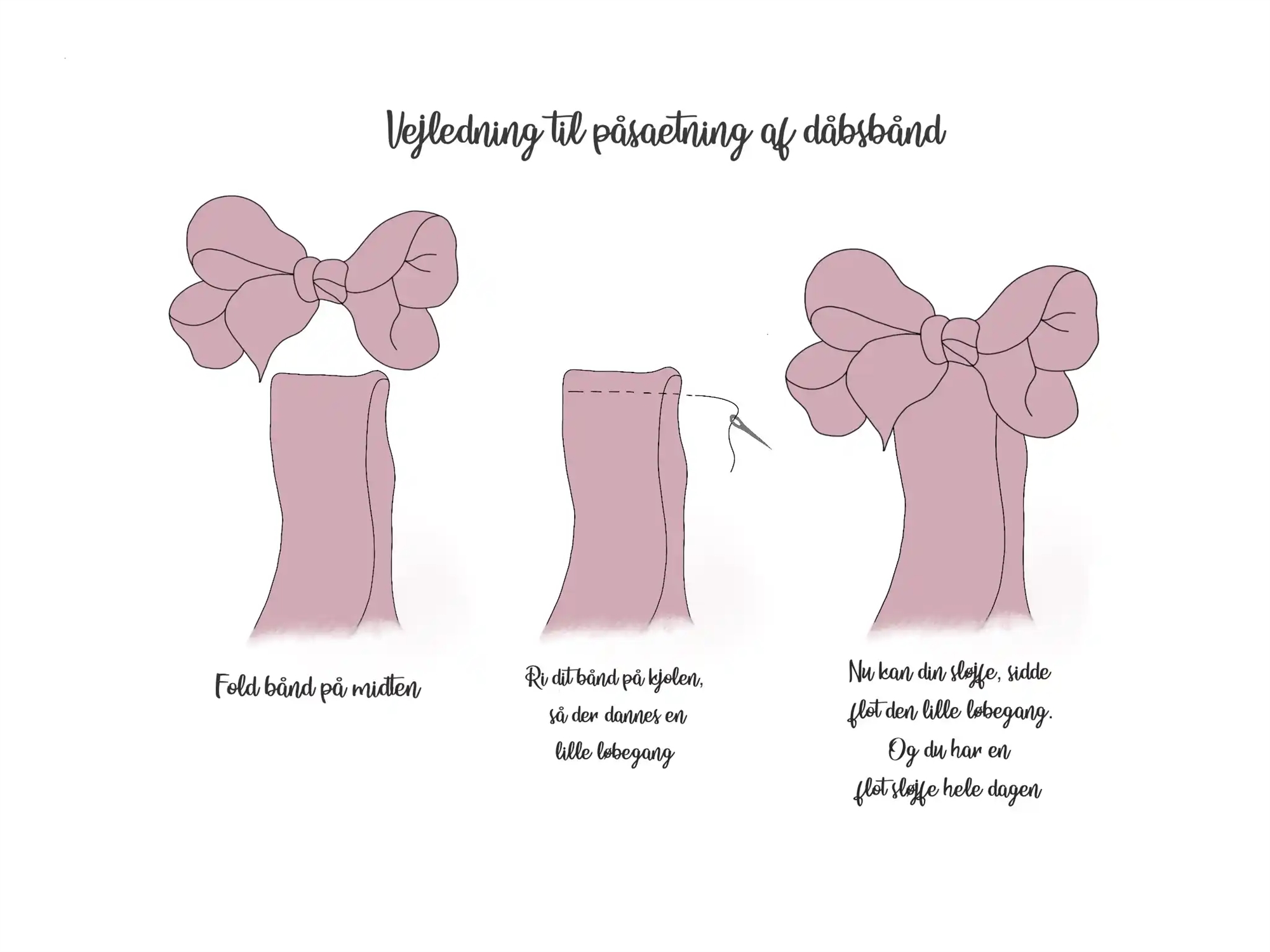 Bow's by Stær dåbsbåndet håndlavet og er 2 m langt og 38 mm bredt og lavet som sæt med en aftagelig sløjfe.