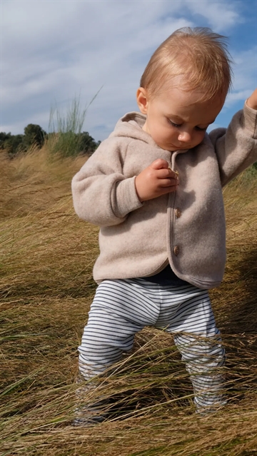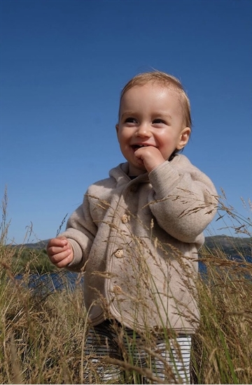 Uldens varmeregulerende egenskaber holder barnet varm og tør. Engel uld jakken er perfekt til middagsluren i barnevognen, til tur i bil eller klapvogn mm.