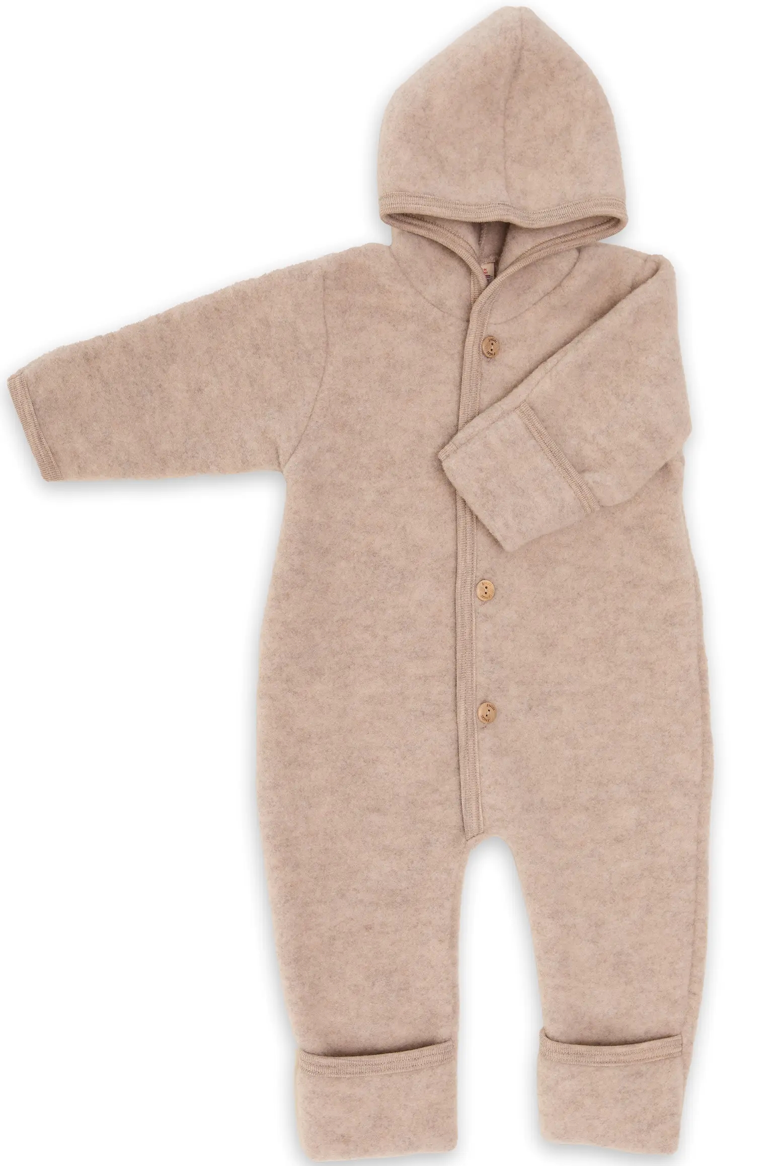 Engel futterne er i flot meleret sandfarve og er lavet i blød uldfleece, der er tyk og både isolerer og er åndbar.