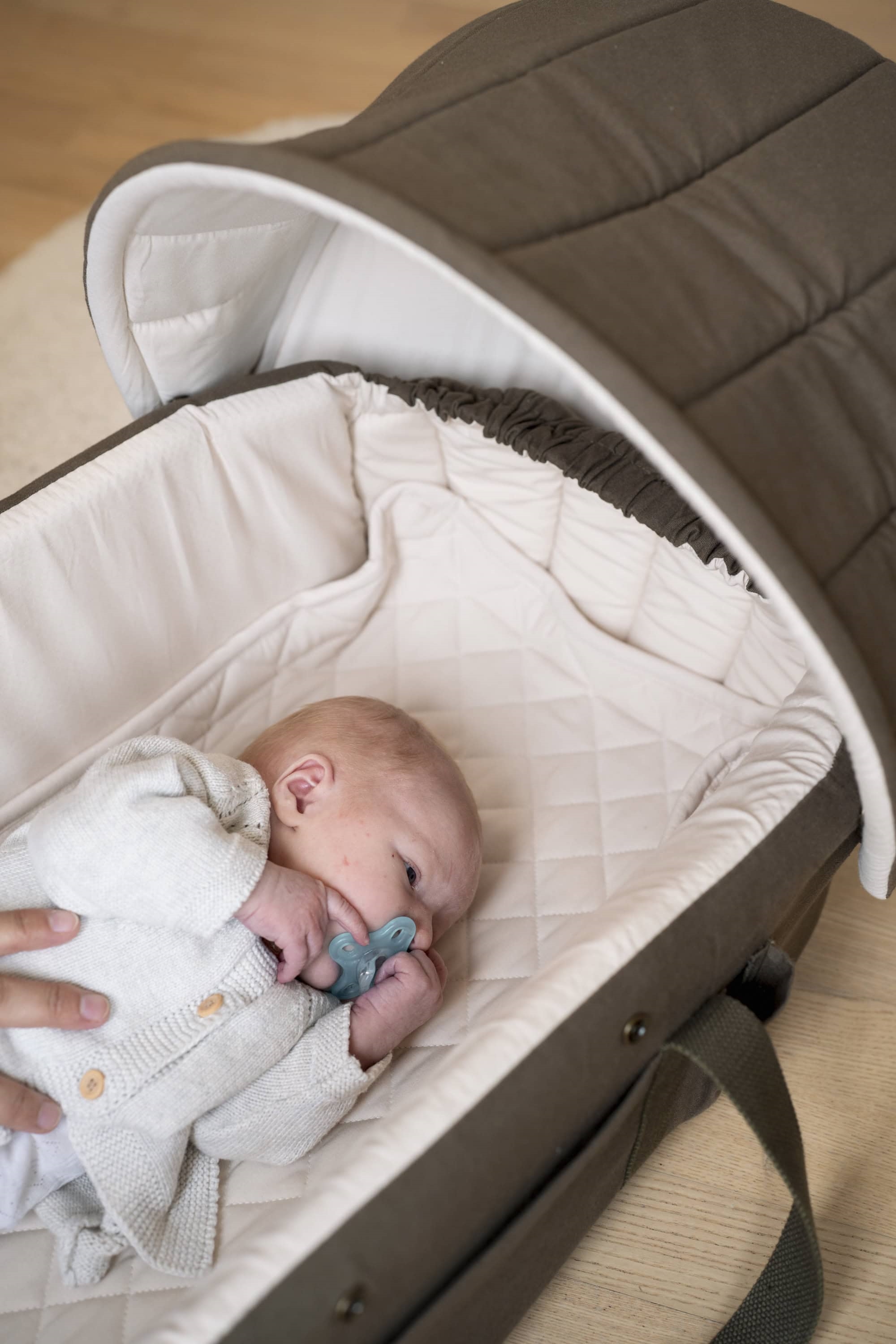 Denne olivenfarvede babylift er designet til at passe i de fleste barnevogne og klapvogne, hvilket gør det nemt at løfte barnet fra vognen og ind i hjemmet uden at afbryde luren. Med en indvendig liggelængde på 70 cm giver denne babylift et trygt sovemiljø til babyer fra fødslen og op til ca. 6 måneder (max 9 kg eller indtil barnet kan sidde selv, rulle rundt eller løfte sig op på hænder og knæ).