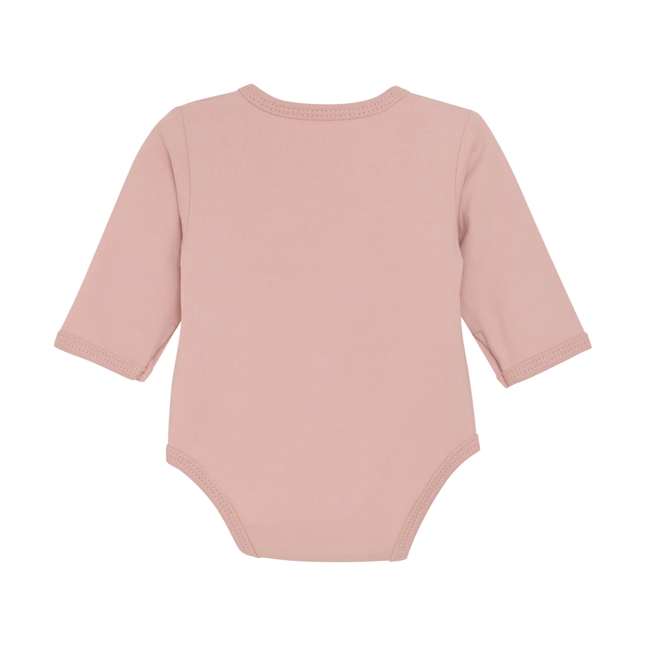 Bodyen er med slå-om, hvilket gør det praktisk og behageligt for en nyfødt, da tøjet ikke skal over hovedet på barnet. Den lukkes med trykknapper langs den ene side.
