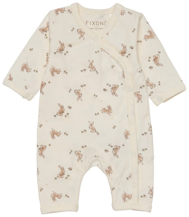 Fixoni heldragten er i unisex med en flot cremehvid nuance og et sødt print med små kaniner.