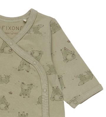 Fixoni bodyen er i en flot, støvet grøn farve og med et sødt print med håndtegnede bjørne.