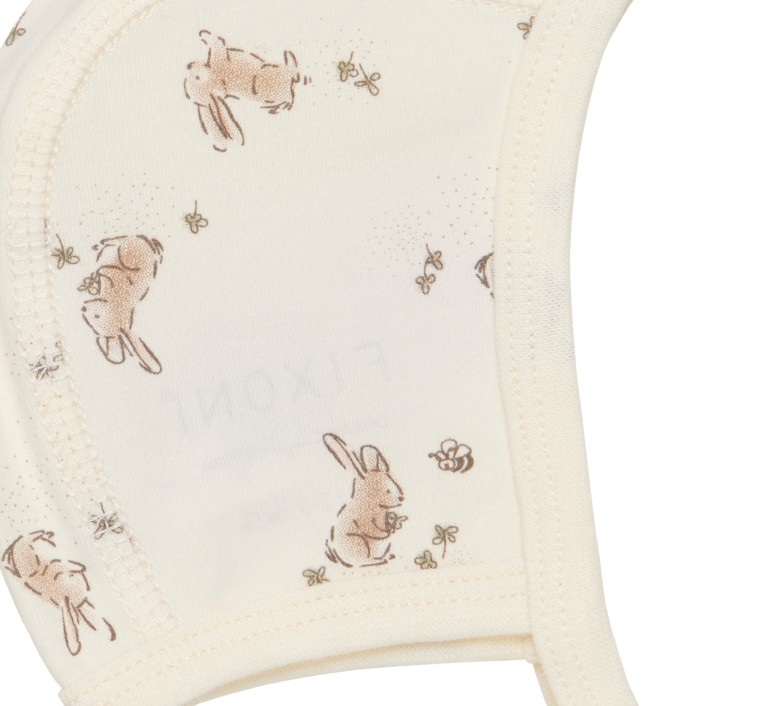 Huen er i en flot cremehvid nuance og et sødt print med små kaniner.