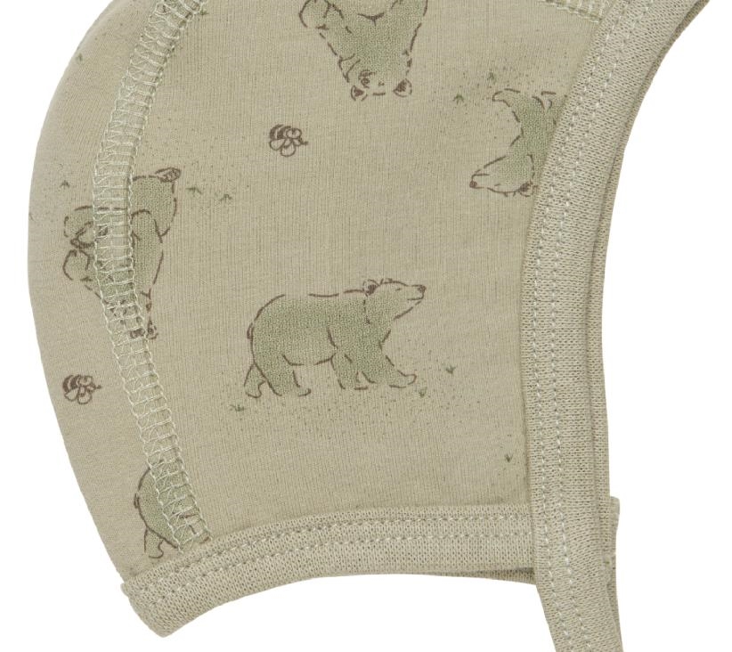 Huen er i en flot, støvet grøn farve og et sødt print med håndtegnede bjørne.