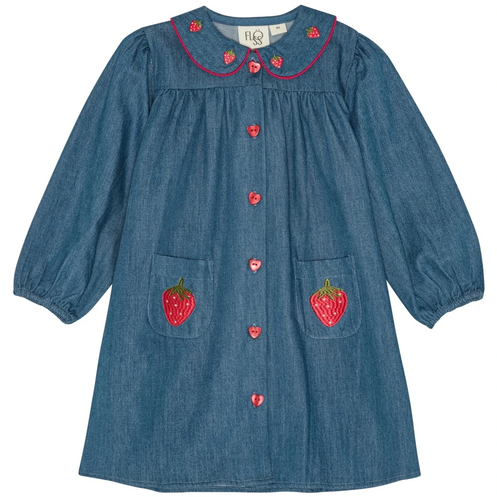 Flöss Kjole - Vilma Dress - Mid Blue Strawberry