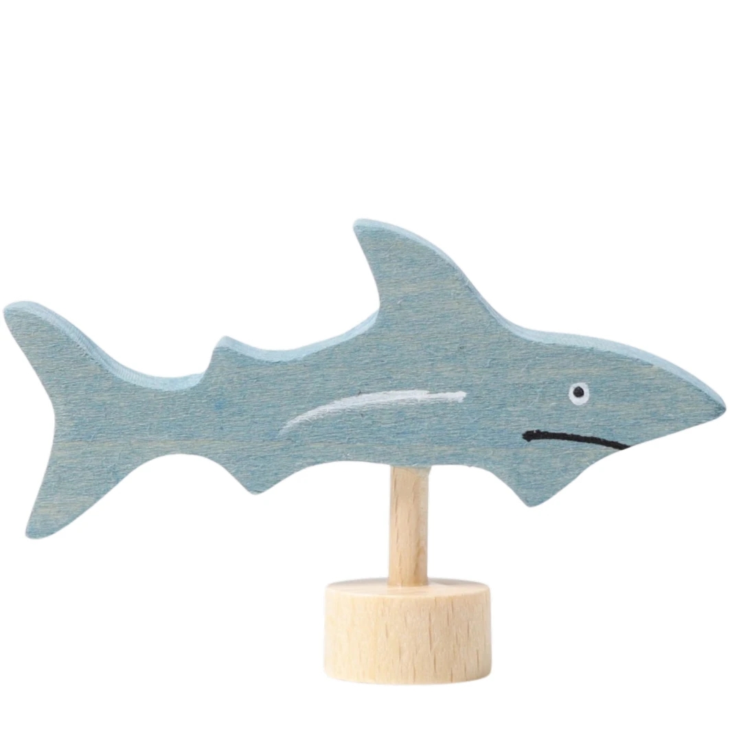 En sej haj træfigur i blå fra Grimms som passer til års- og fødselsdagsringene.