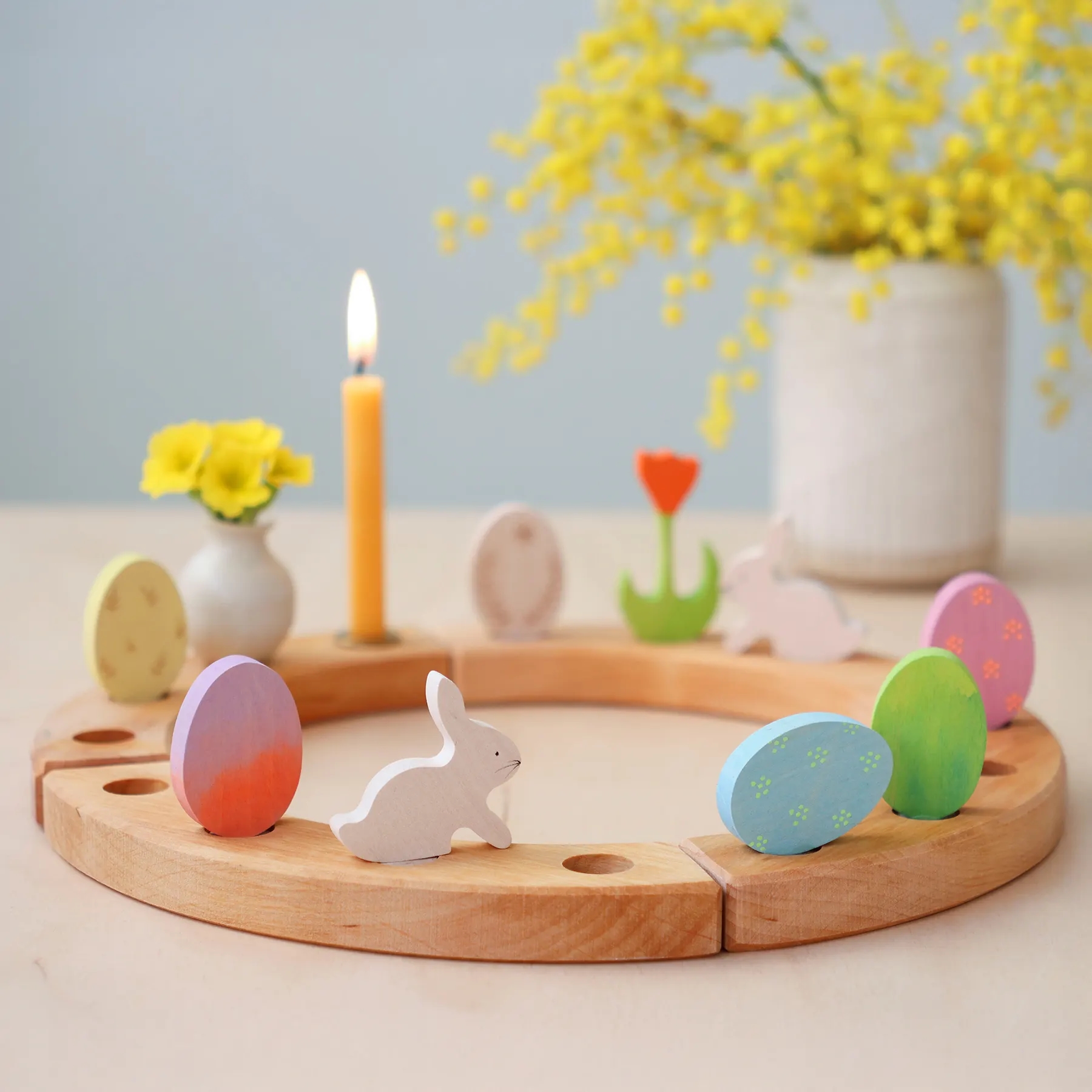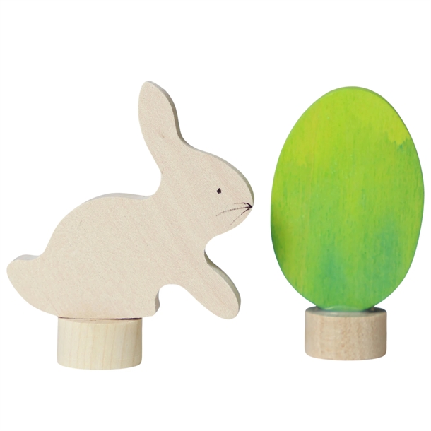 Et sødt påskesæt fra Grimms med en påskehare og grønt påskeæg, som kan sættes i års- og fødselsdagsringene.