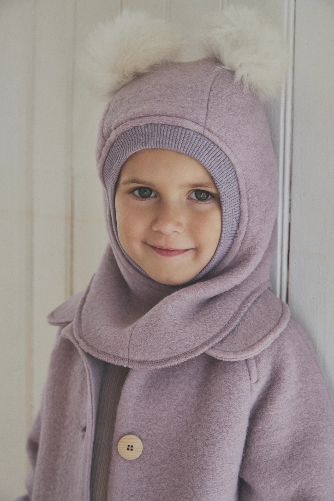 Huen er lavet i 2-lag med uld yderst og er foret med blødt bomuldsvelour inderst. Huen har en rund hovedform med en god ribkant rundt ved ansigtet, samt en god længde i nakken, så den lukker af for vinden og beskytter ørerne.