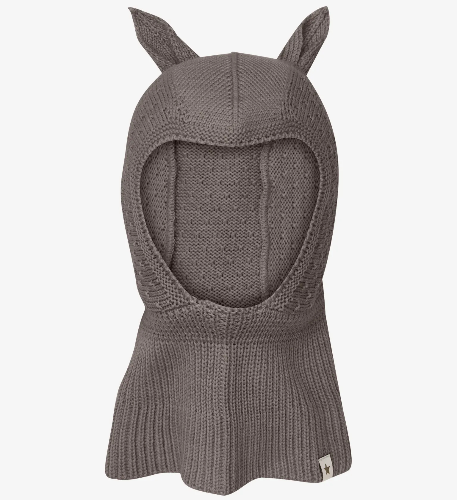 Den er lavet som elefanthue og har en god pasform og lukker til om hovedet. Der er fint med stræk i huen.