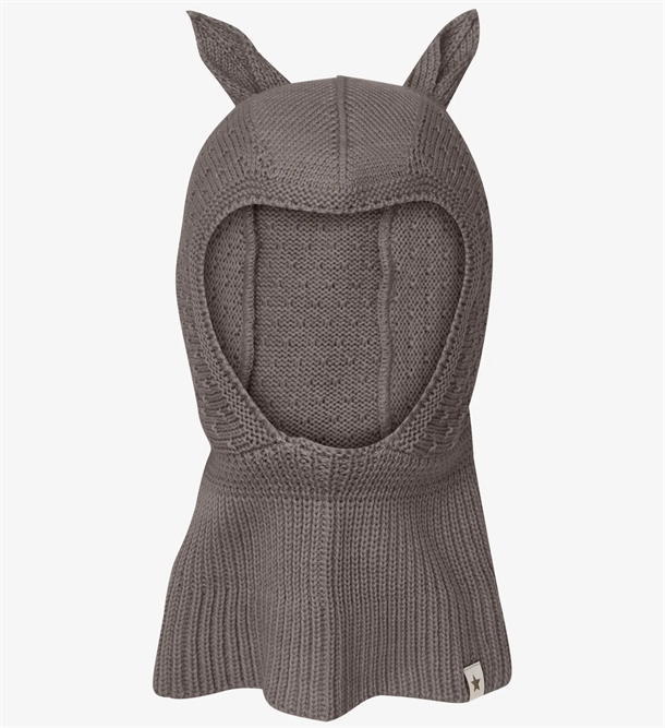 Supersød Huttelihut hue med ører lavet i blød strik af merinould.