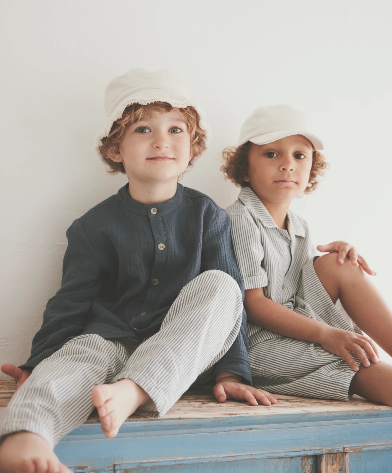 Huttelihut Skjorte - Kortærmet - Muslin - Bering Sea - her ses den som langærmet
