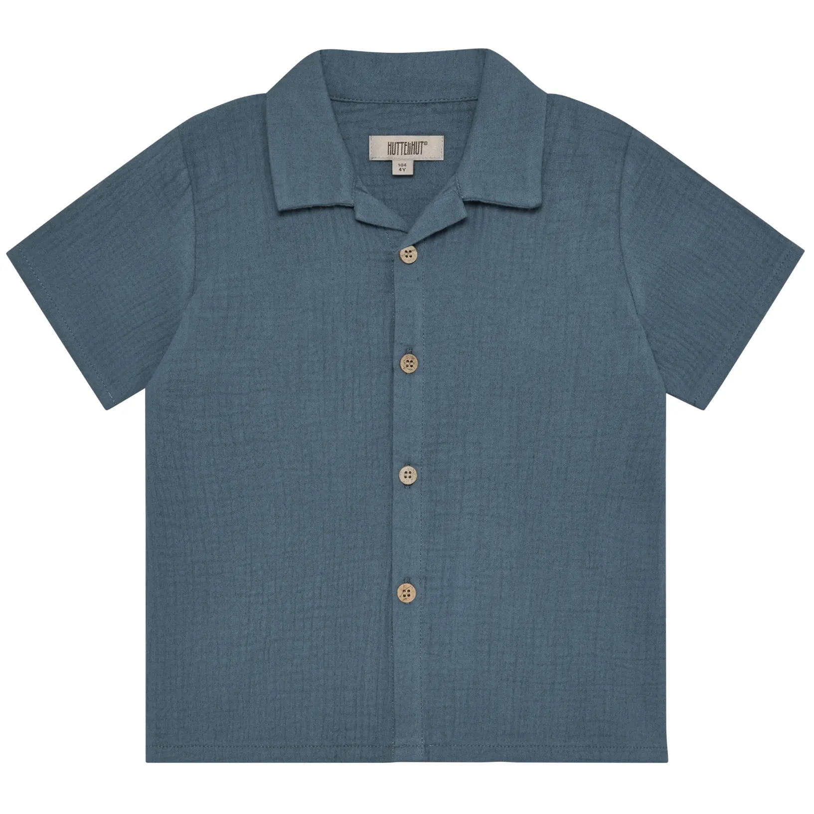 Huttelihut Skjorte - Kortærmet - Muslin - Bering Sea - i blå