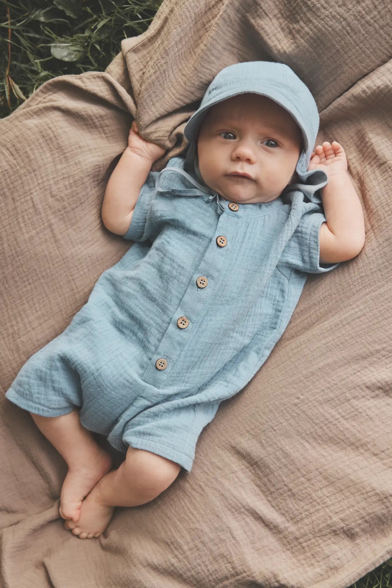 Solhatten er lavet i 100% økologisk muslin bomuld og er derfor lækker blød.