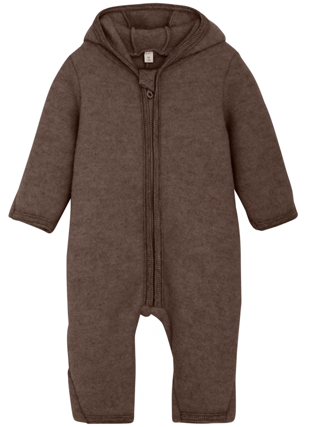Huttelihut ulddragten er i en flot, meleret brun nuance og er lavet med gennemgående lynlås. Dragten er lavet i 100% merinould fleece og er OekoTex-certificeret, hvilket vil sige, at alt i ulddragten er testet for skadelige kemikalier.