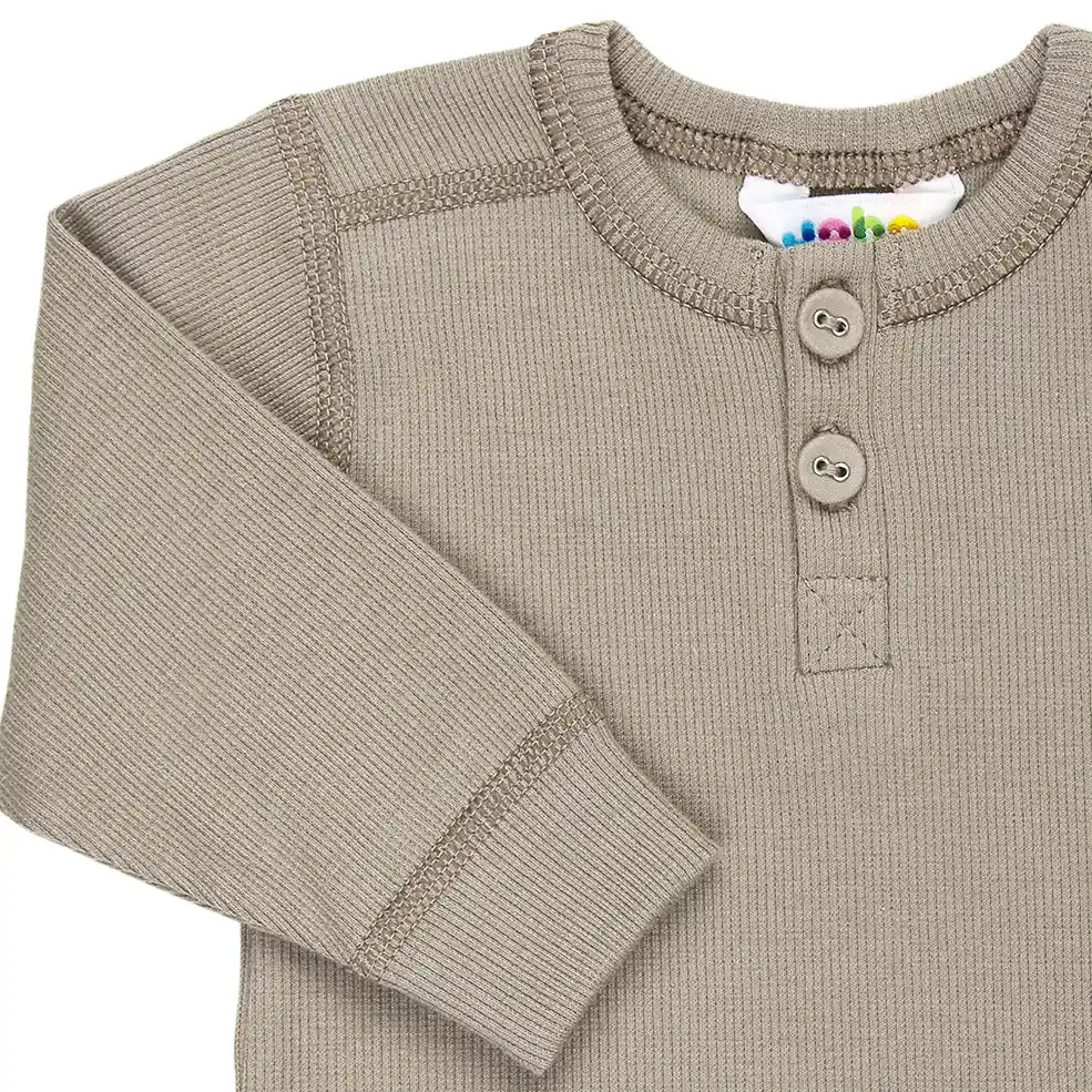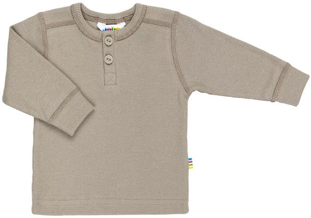 Joha blusen er i en flot beige nuance med lange ærmer. Blusen er lavet med rib-struktur og har to knapper foran.