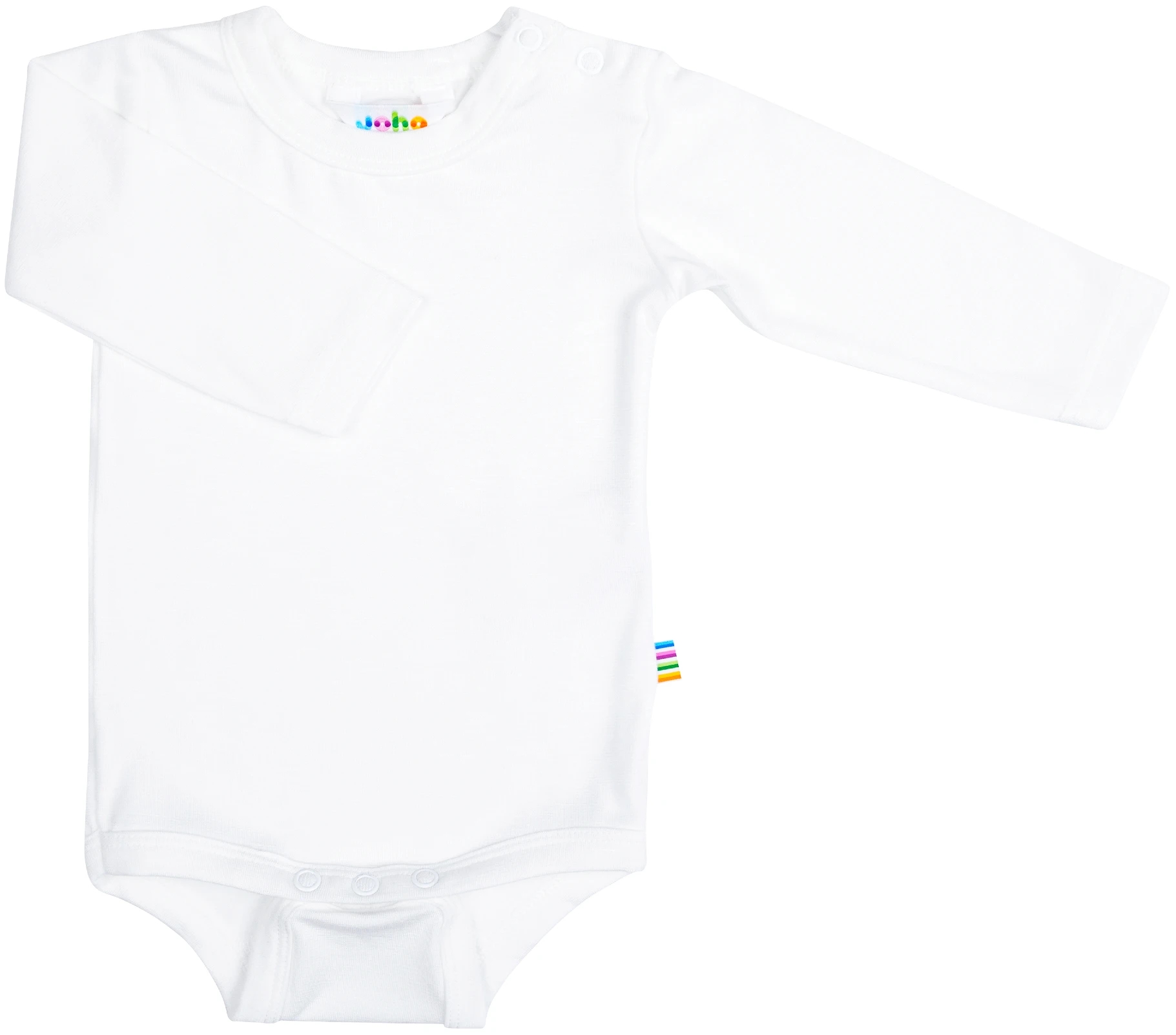 Joha body i hvid med lange ærmer lavet i økologisk bambus, hvilket gør bodyen virkelig blød og lækker.