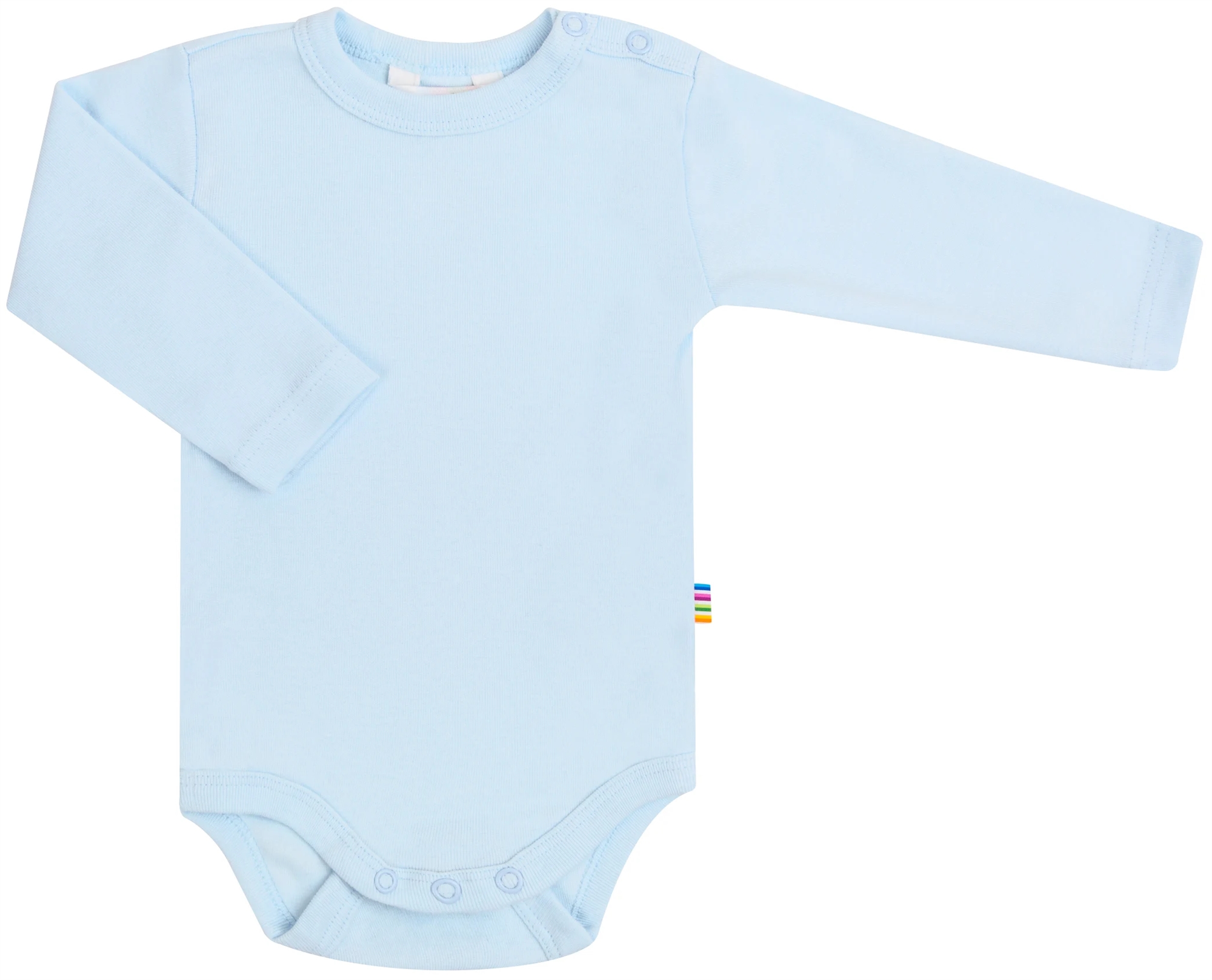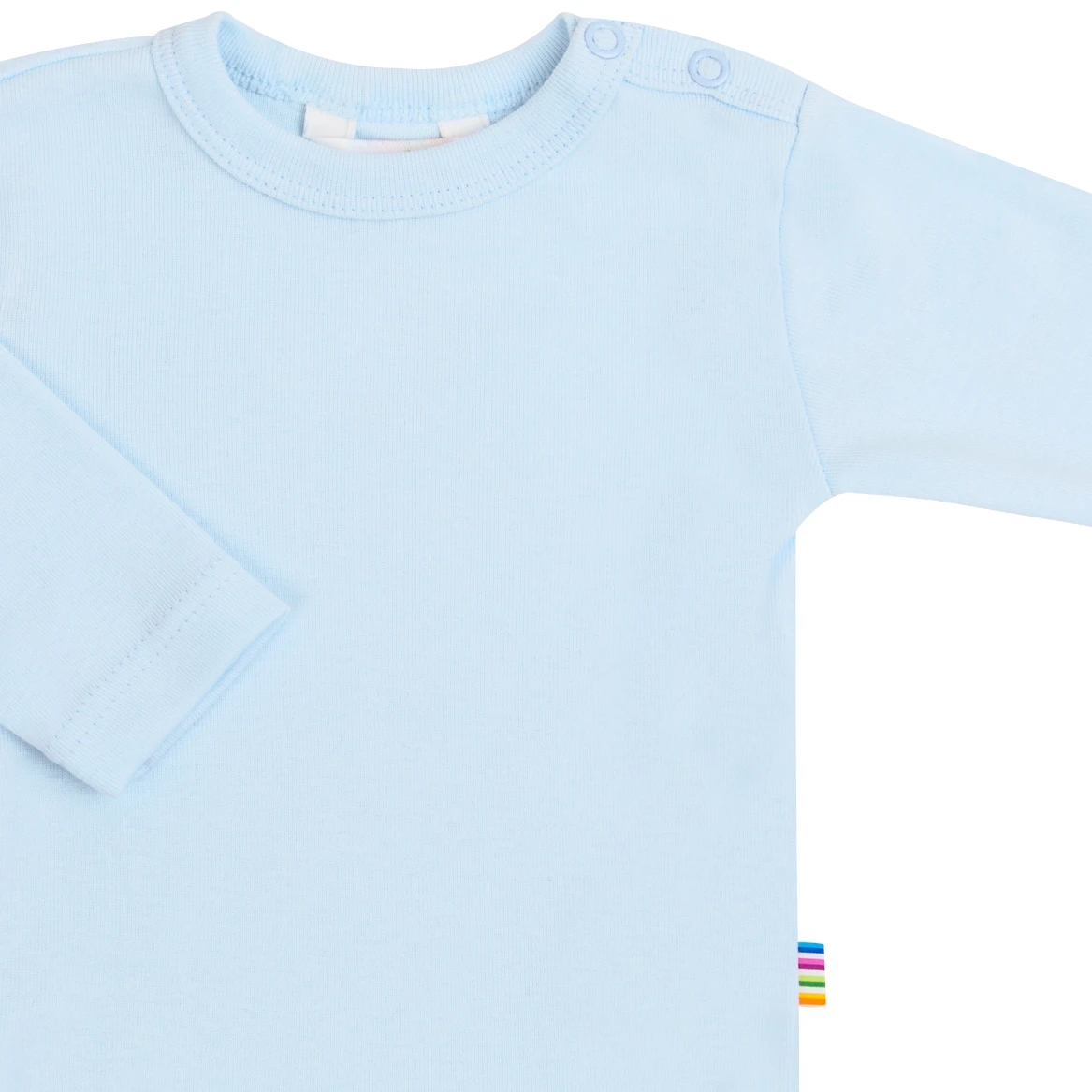 Joha body i flot, støvet lyseblå med lange ærmer lavet i dejlig blød økologisk bomuld.