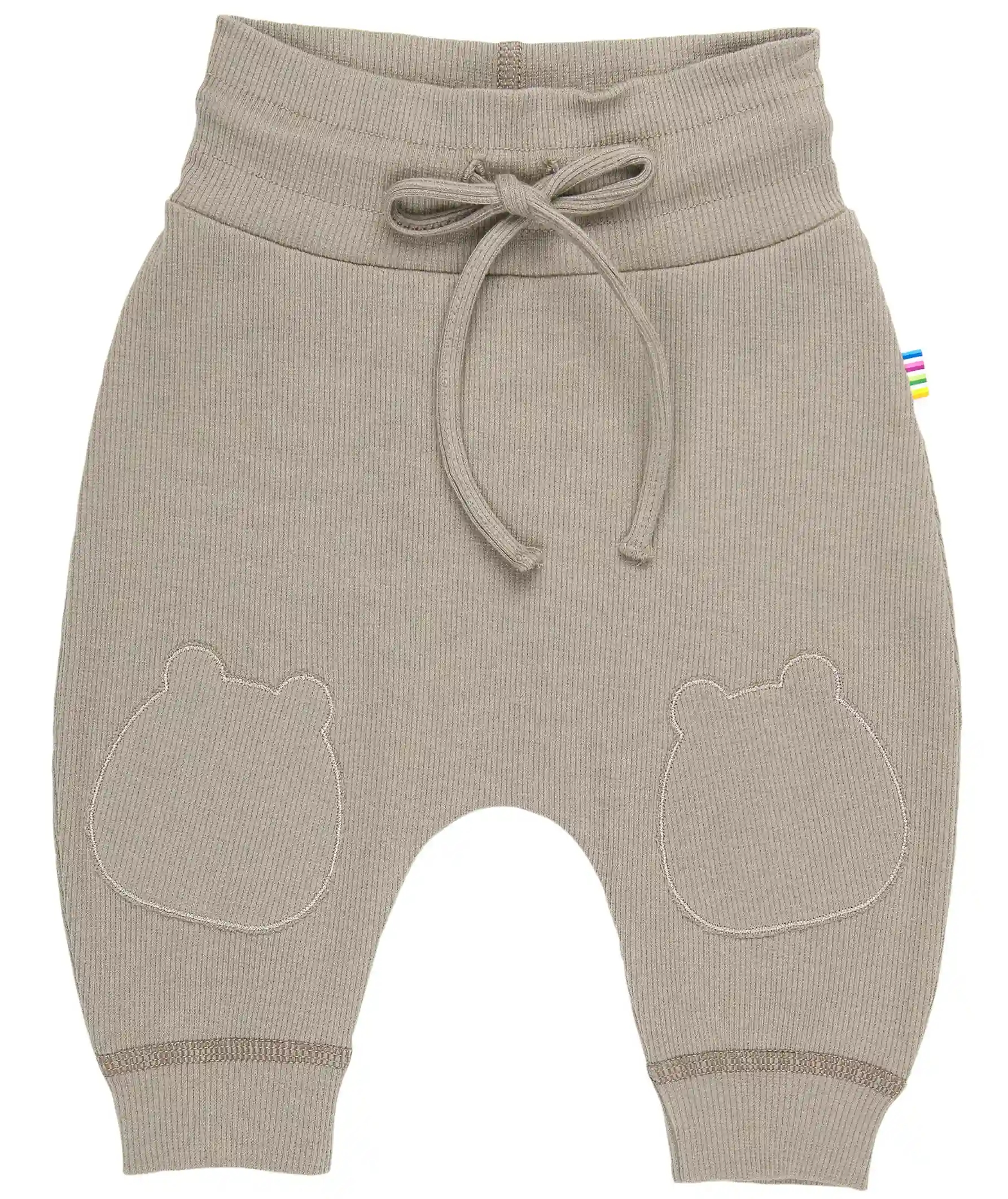 Joha bukserne er lavet blød kvalitet og er med en god, bred elastik i taljen, samt en rummelig pasform, som gør dem rigtig gode og behagelige til baby og de mindste børn. Bukserne er med bindebånd i taljen og bamser på knæene.