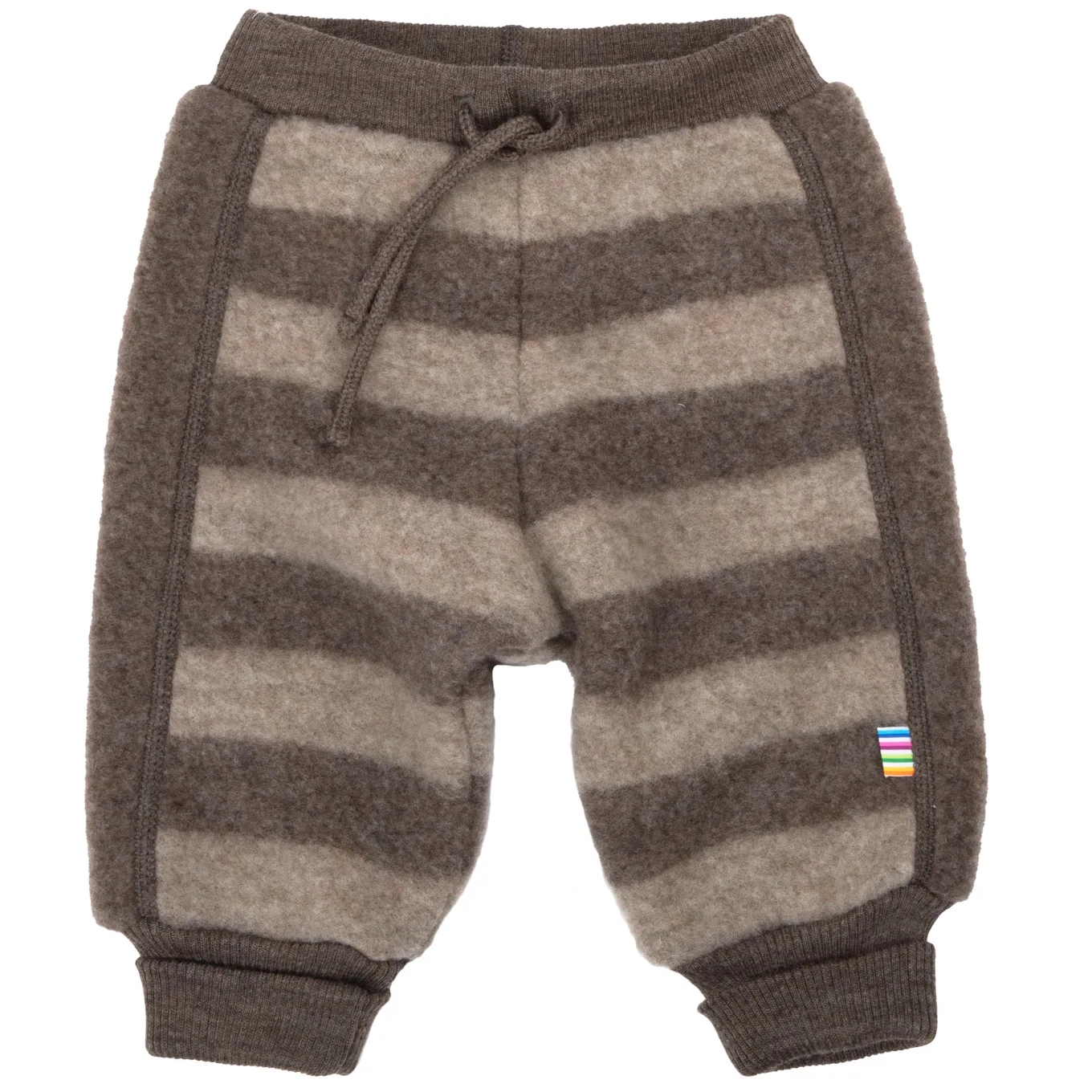 Joha bukserne er med beige-brune striber og er lavet i en let og lækker uld kvalitet, som er børstet, så den er ekstra blød og behagelig at have på.