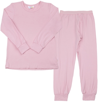 Joha leggingsene er i en flot, støvet rosa og lavet i 100% merino uld uden skidt kemi.