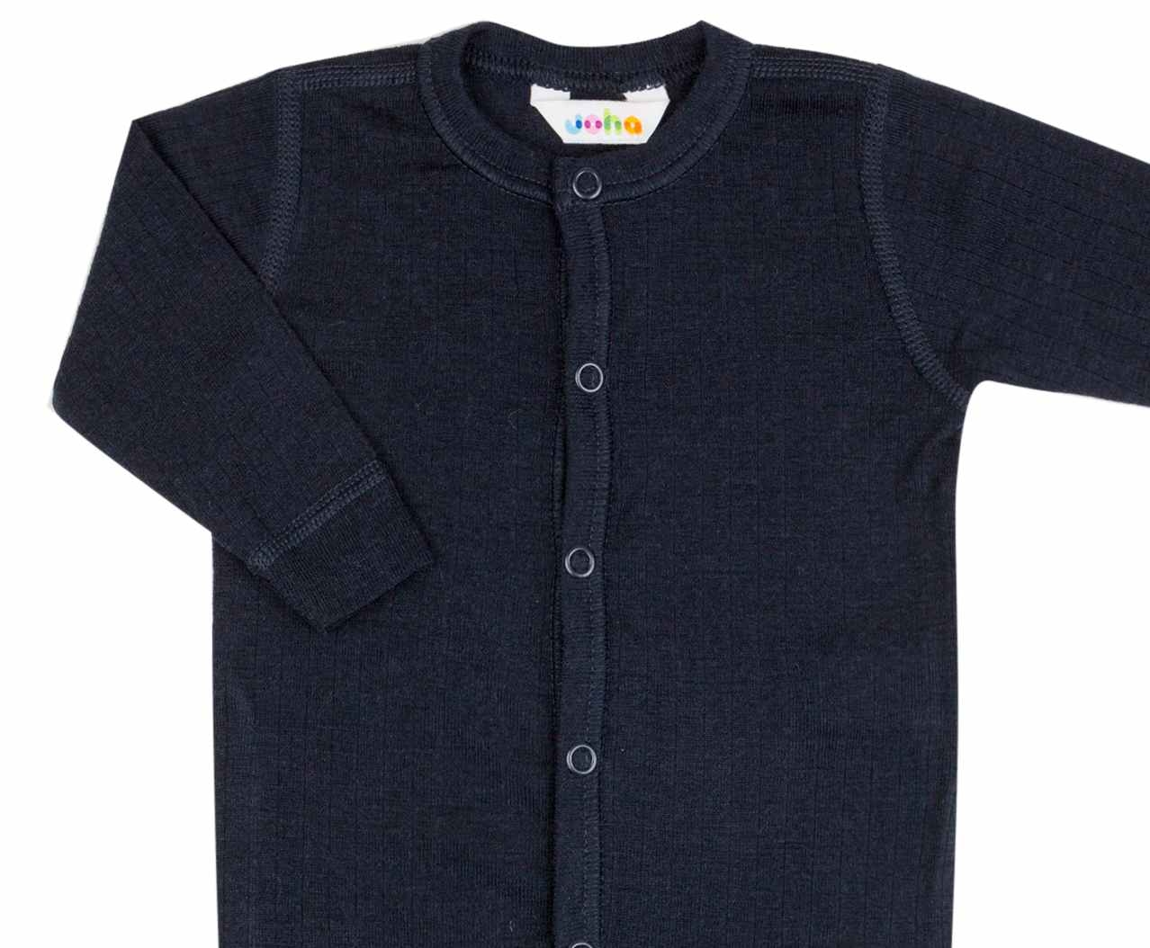 Uldens kulde/varme-regulerende egenskaber gør uld bodyen god både vinter og sommer.