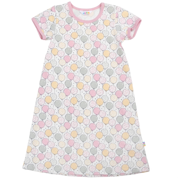 Joha natkjolen er med korte ærmer og rummelig facon. Den er hvid og med lyserøde kanter, samt et sødt print med balloner.