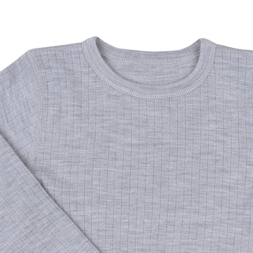Joha blusen er i flot meleret grå med rib i en dejlig blød uldkvalitet.