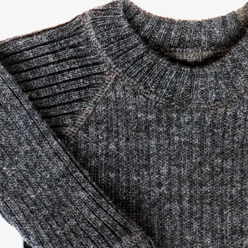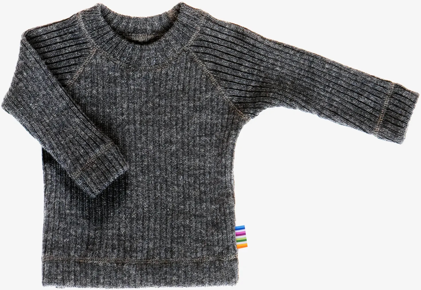 Joha uld blusen er lavet i en kraftig uldkvalitet i flot mørkegrå og er strikket med rib.
