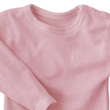 Joha uld bodyen er i en flot, støvet rosa nuance lavet med rib.
