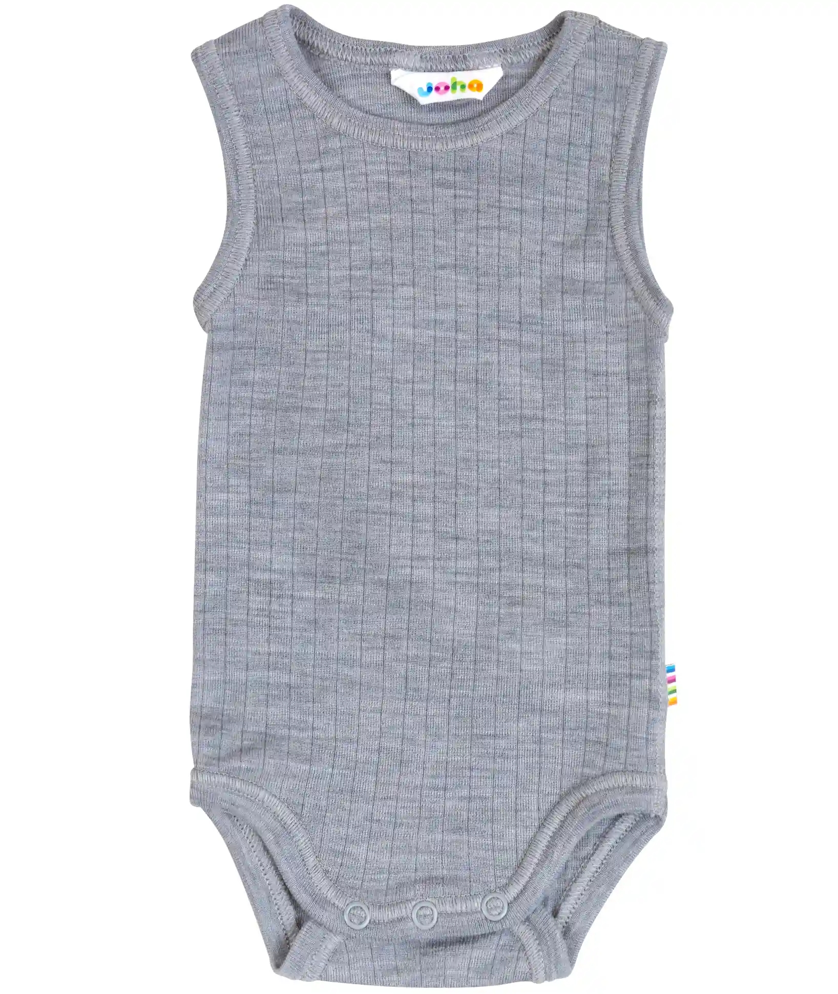 En skøn Joha uld body uden ærmer i flot grå til de mindste.