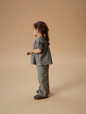 En super sød Lil Atelier bluse i støvet grøn med et fint mønster.