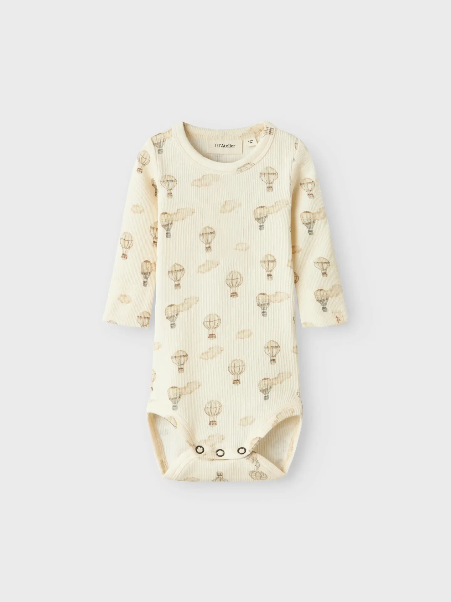 Lil Atelier bodyen er i en flot lys farve med et fint print af luftballoner.