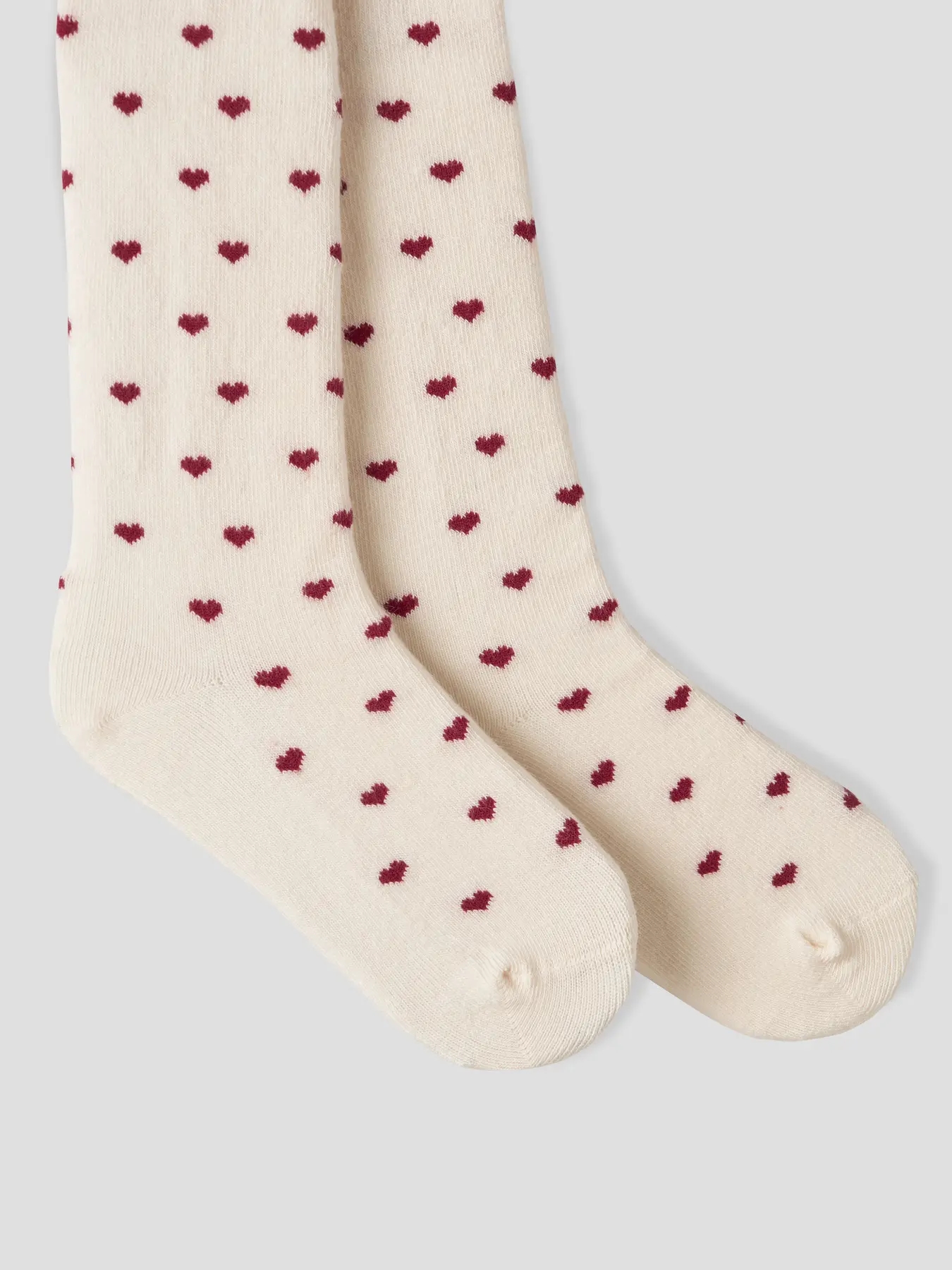 Lil Atelier strømpebukserne er cremehvide med røde hjerter, som gør dem så yndige.