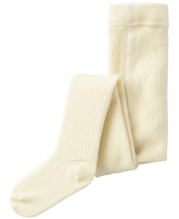 Wheat strømpebukserne er lavet i en blød og lun uldblanding i flot offwhite med fine blondedetaljer.