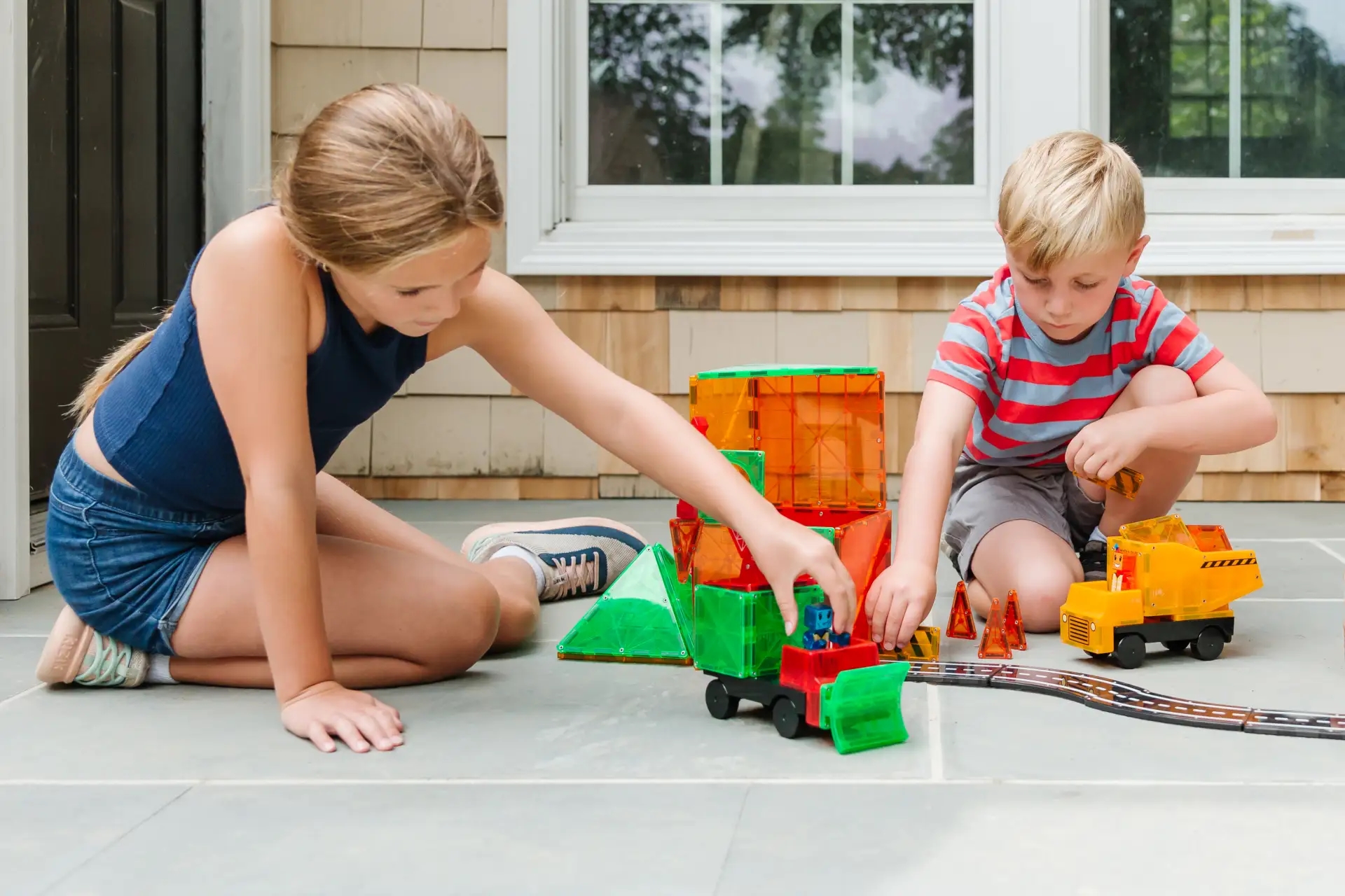 Med både klassiske Magna-Tiles og microMAGS kan børn fra 3 år bygge kraner, lastbiler, veje og entreprenørmaskiner, der styrker både motorik, fantasi og logisk sans.