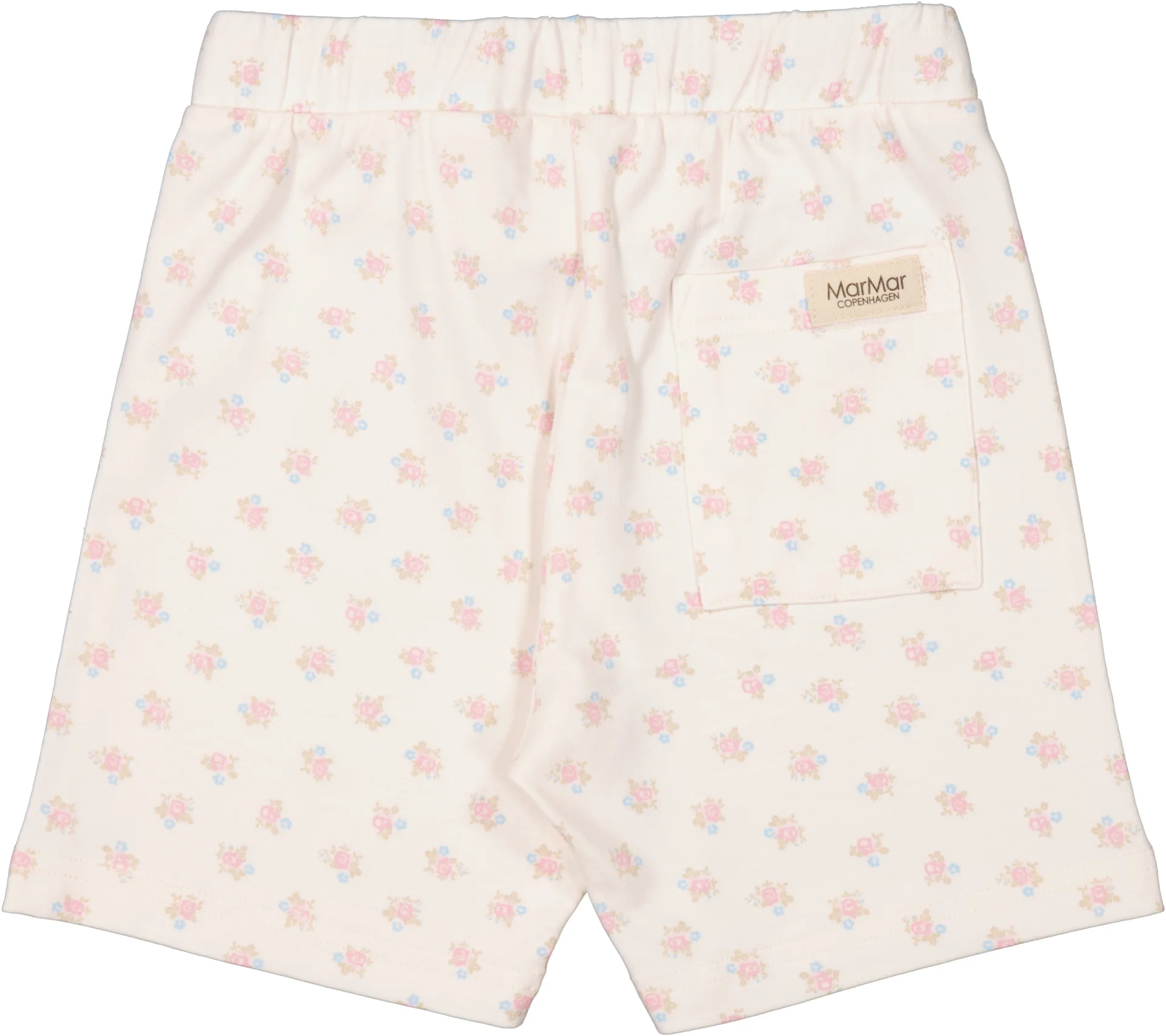 MarMar shortsene er med et smukt blomsterprint i rosa og pastelblå nuancer. Det passer smukt sammen med en underdel i samme print eller farverne heavenly blue og pink blossom fra MarMar.