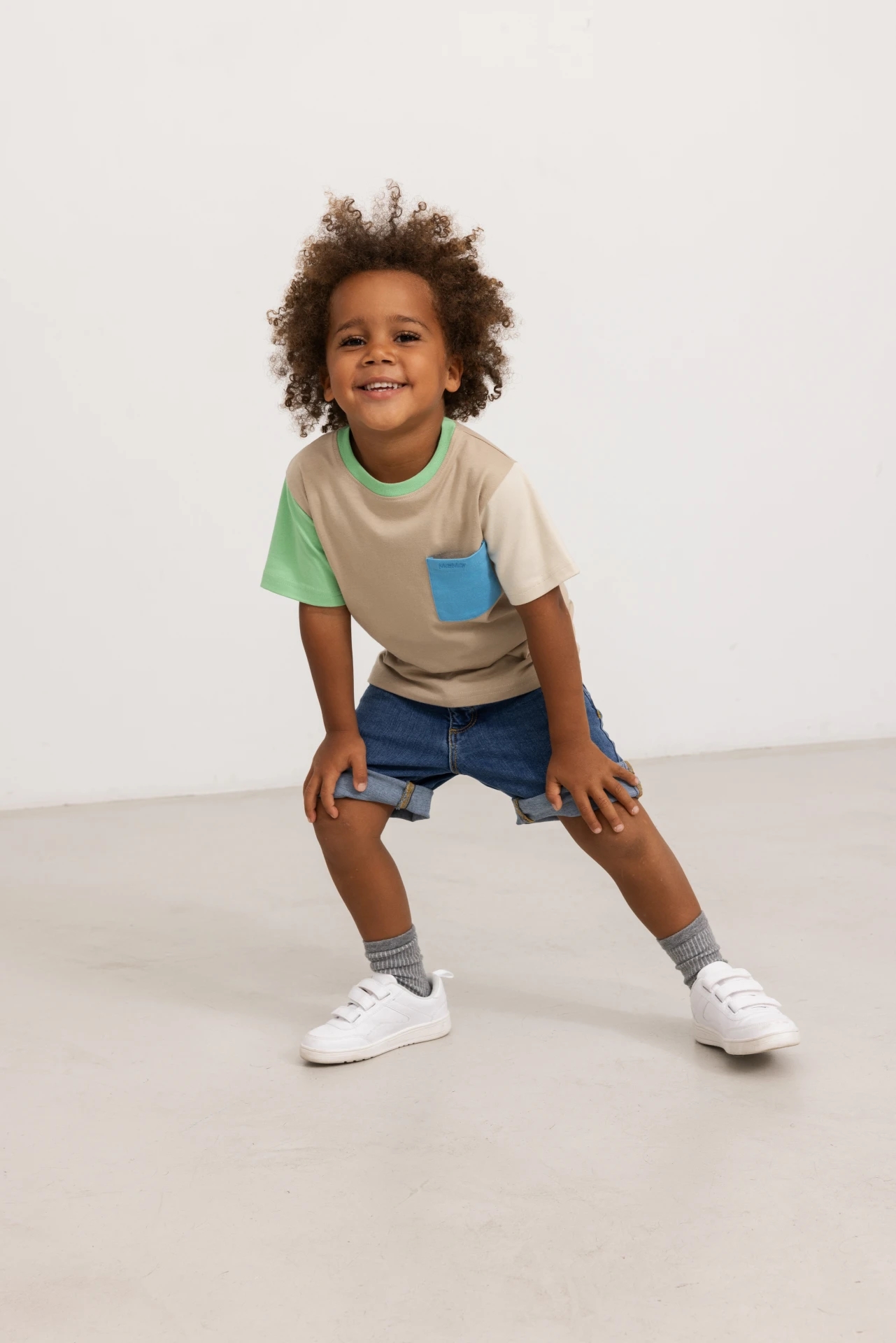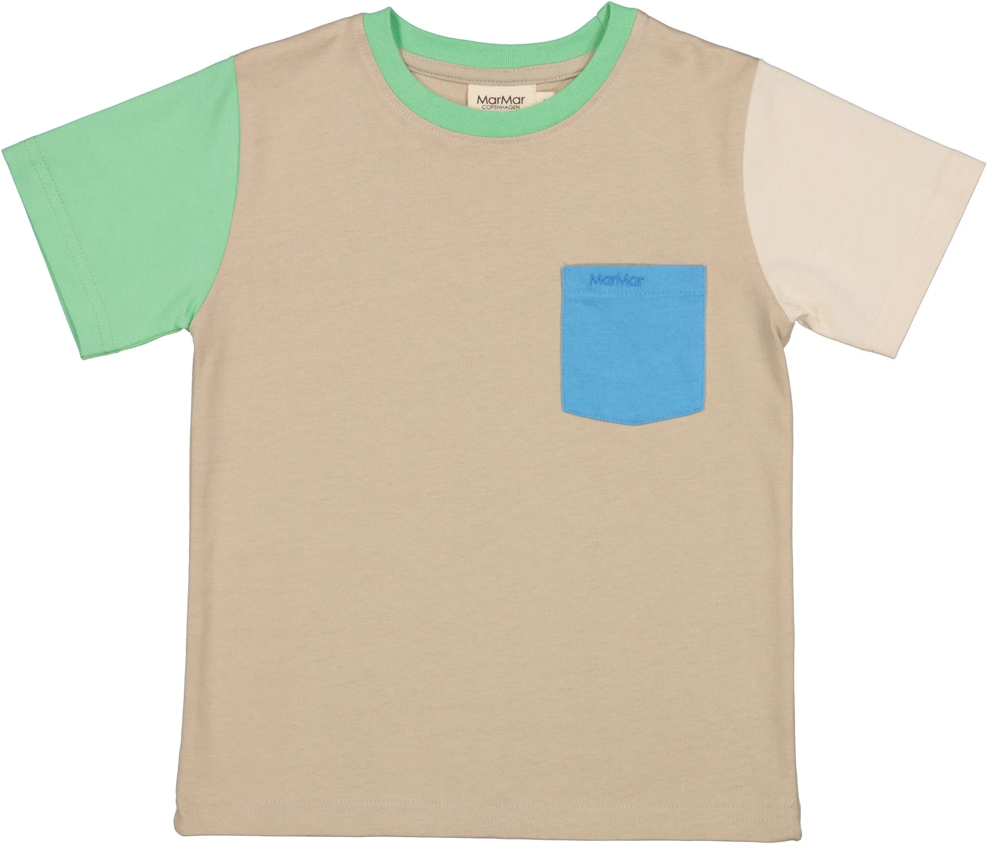MarMar T-shirten er kortærmet og har nogle lækre nuancer af beige, grøn og blå.