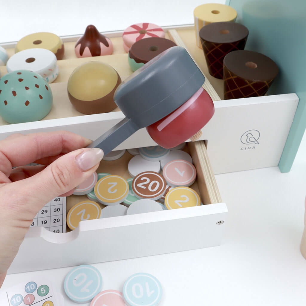 Den flotte matematiske isbutik fra CIha er legetøj lavet i træ og kombinerer både leg og læring på en sjov måde.