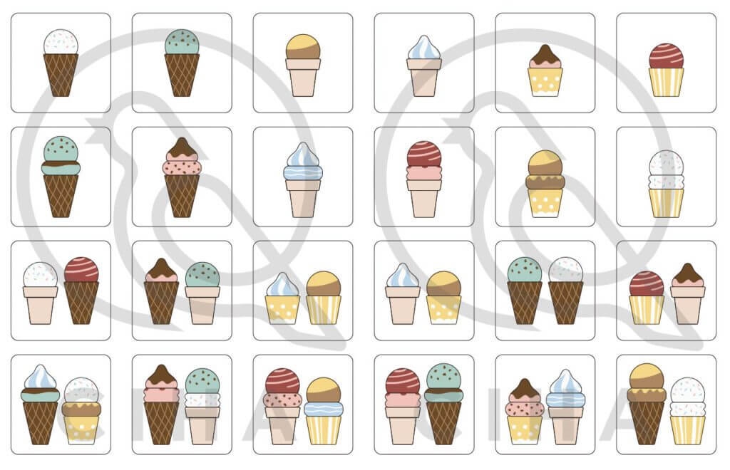 I selve isbutikken er der integreret en pengeskuffe til mønterne af træ, så de små dele nemt kan opbevares. Derudover medfølger en tang, magnetisk isske, bestillingstavle, taltavle, regnekort og kombinatorikkort.