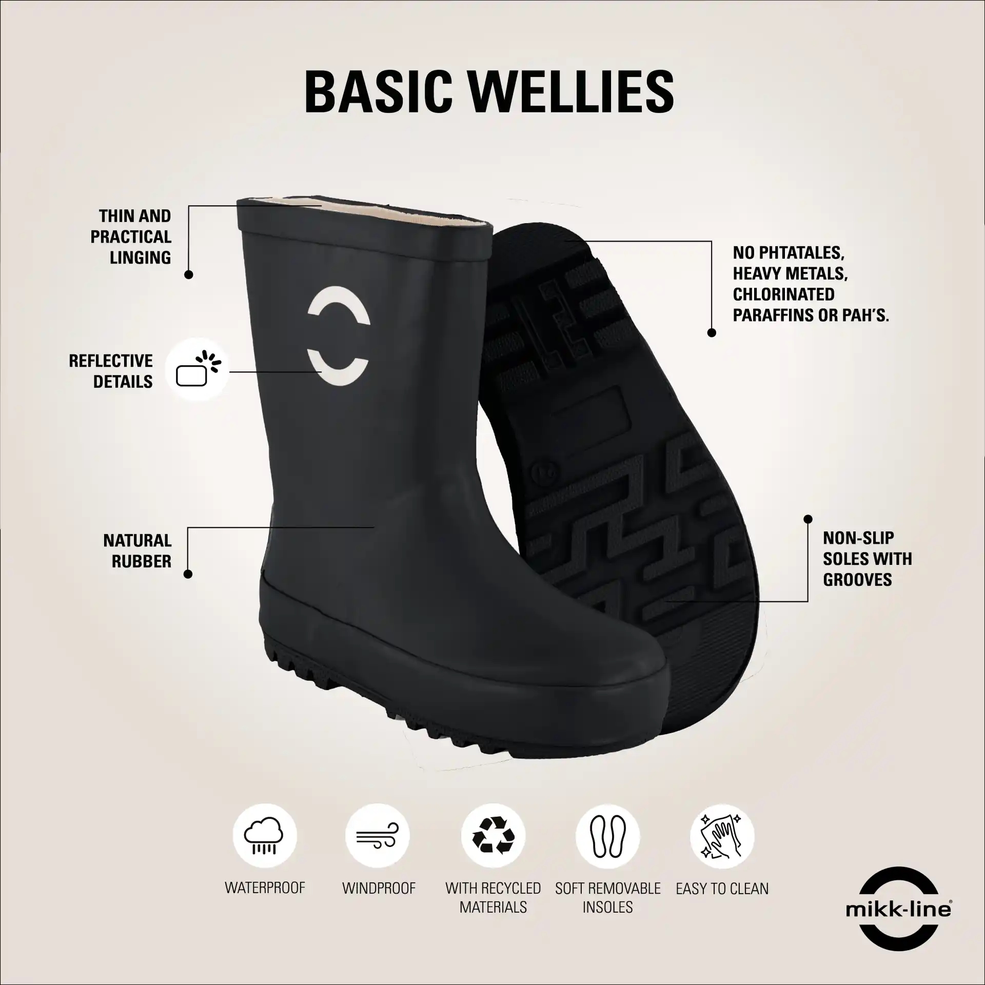 Et par flotte Mikk-line gummistøvler i sort.