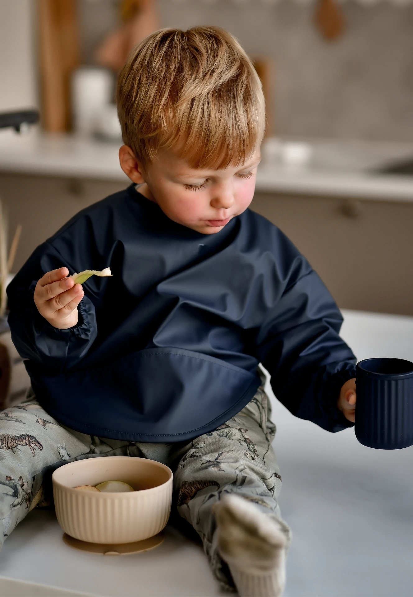 Mikk-Line hagesmæk med ærmer - PU - Blue Nights